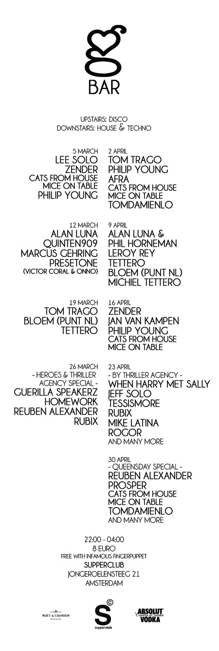De muzikale ondersteuning is afkomstig uit alle hoeken van het  nachtleven en betreft dan ook een aantal van de grote kopstukken. Een aantal zijn reeds bevestigd, maar we hebben nog een hoop verassingen voor je in petto, hou onze nieuwe eventpage in de gaten voor het laatste nieuws. Komende weken kunt je nog een hoop verwachten ; )