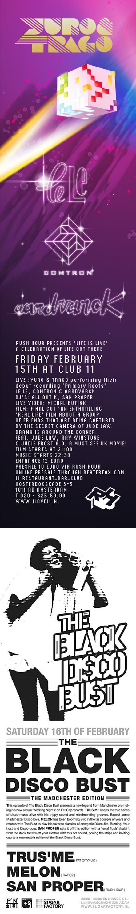 De muzikale ondersteuning is afkomstig uit alle hoeken van het  nachtleven en betreft dan ook een aantal van de grote kopstukken. Een aantal zijn reeds bevestigd, maar we hebben nog een hoop verassingen voor je in petto, hou onze nieuwe eventpage in de gaten voor het laatste nieuws. Komende weken kunt je nog een hoop verwachten ; )