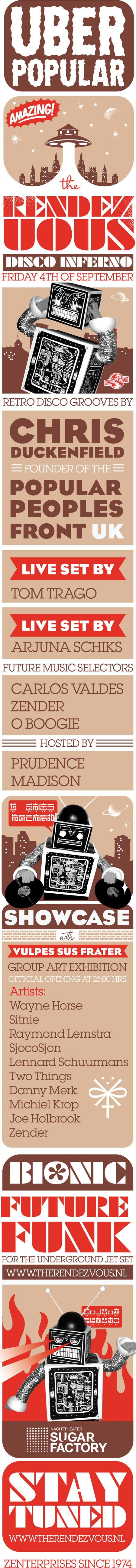 De muzikale ondersteuning is afkomstig uit alle hoeken van het  nachtleven en betreft dan ook een aantal van de grote kopstukken. Een aantal zijn reeds bevestigd, maar we hebben nog een hoop verassingen voor je in petto, hou onze nieuwe eventpage in de gaten voor het laatste nieuws. Komende weken kunt je nog een hoop verwachten ; )